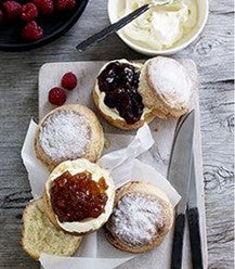 Step 4: Cool on a wire rack and consume shortly thereafter with lashings of clotted or whipped cream and a generous amount of Raspberry and Rhubarb jam.